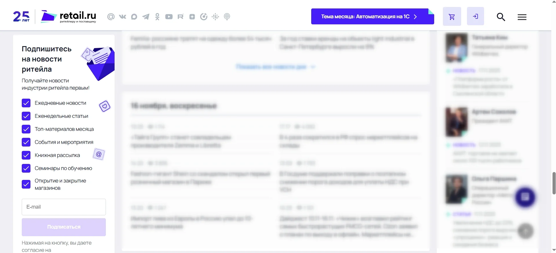 У Retail.ru есть форма в сайдбаре, а ещё — exit-попап (о нём ниже)