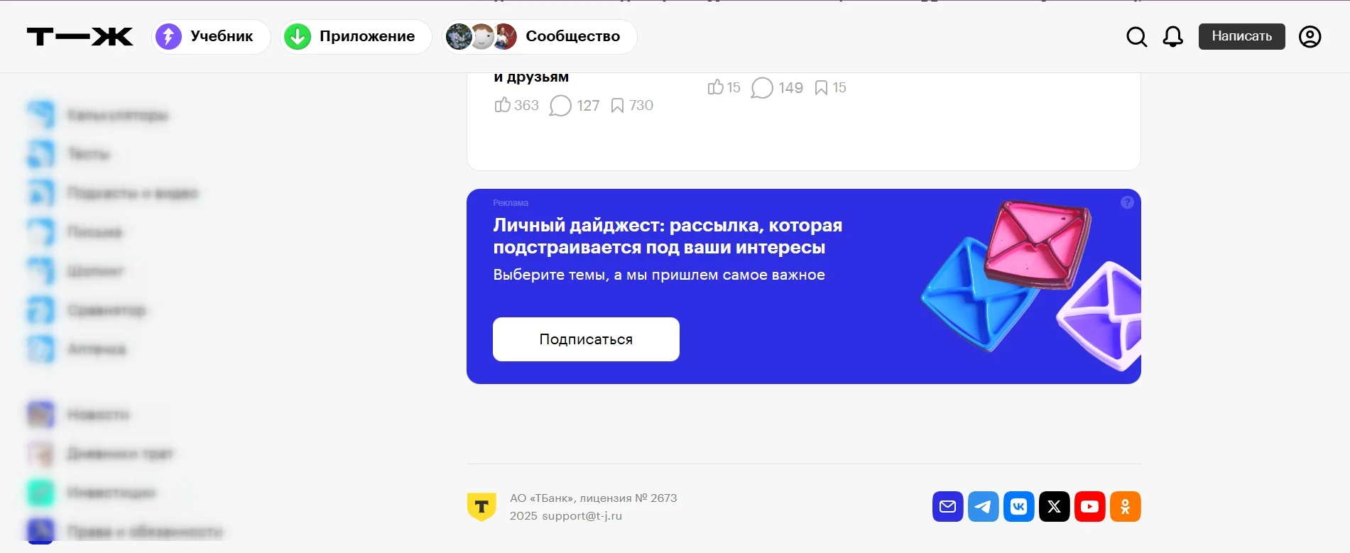 В конце страницы с материалом у Т—Ж есть предложение собрать личный дайджест по интересующим темам