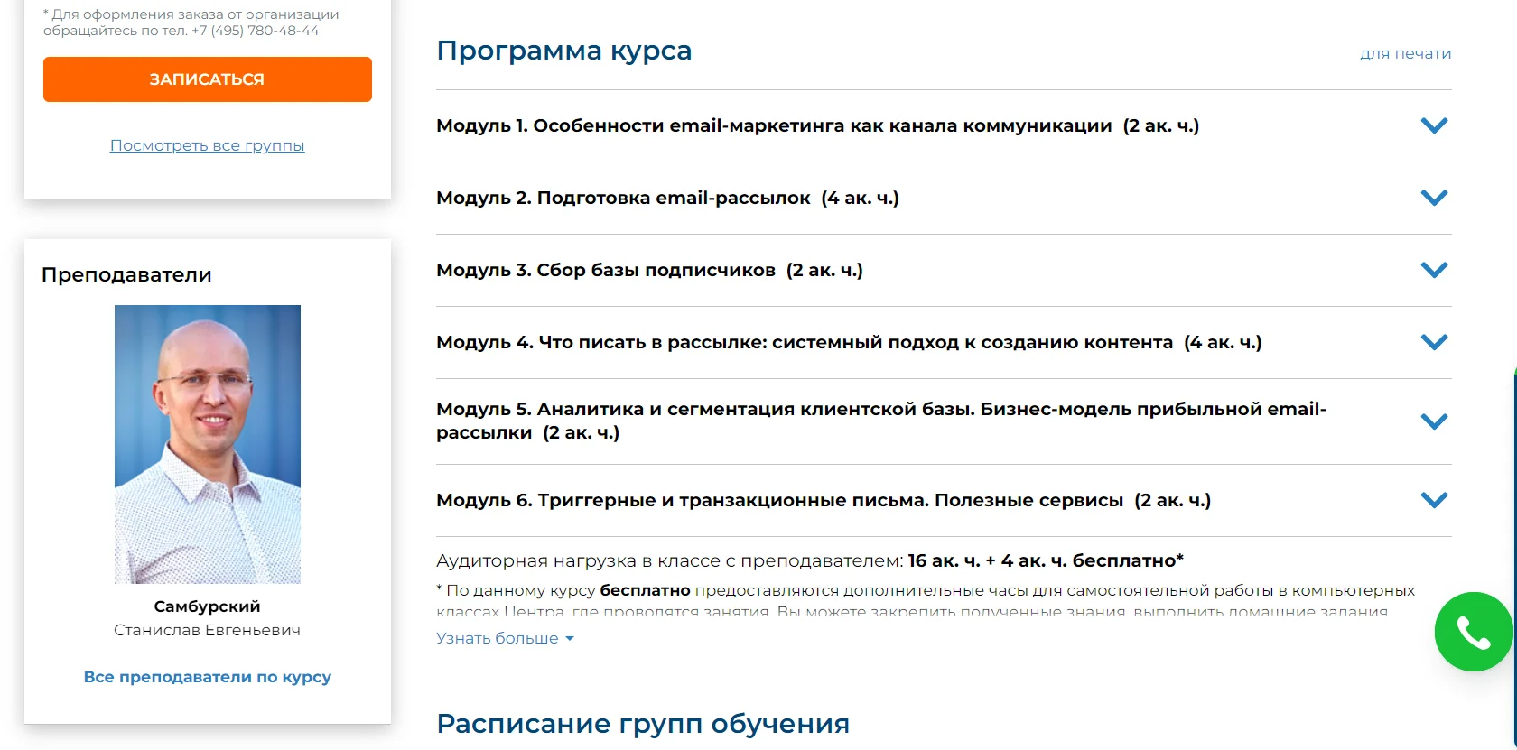 Формат. 11 модулей только для очного обучения.