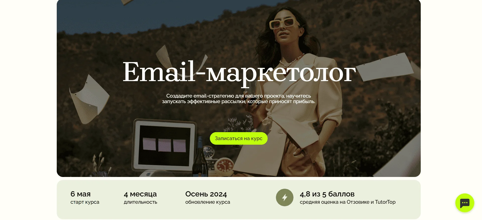 Плюшки и особенности. Отличный специализированный курс, который сосредоточен на одной стороне рассылок — контенте, а потому не размывается. Есть бесплатное вводное занятие, а после курса можно попасть на стажировку в агентство.