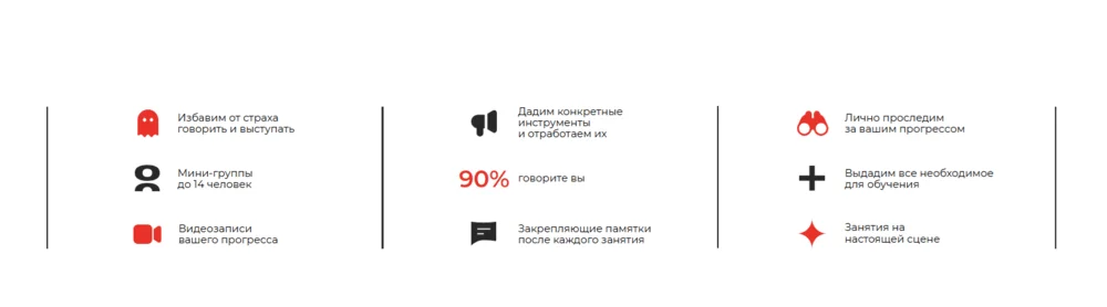 Курс рассчитан на тех, кто хочет избавиться от страха публичных выступлений, чтобы презентации на работе, онлайн или на конференциях стали легкими и уверенными. На занятиях вы будете выступать минимум два раза, получая обратную связь сразу. На курсе легко отслеживать свой прогресс, благодаря видеозаписи и контрольным точкам, которые фиксируют результат. Обещают минимум теории и максимум практики: инструменты, которые реально работают, помощь в преобразовании волнения в энергию и конструкторская сборка выступлений «за 5 минут».