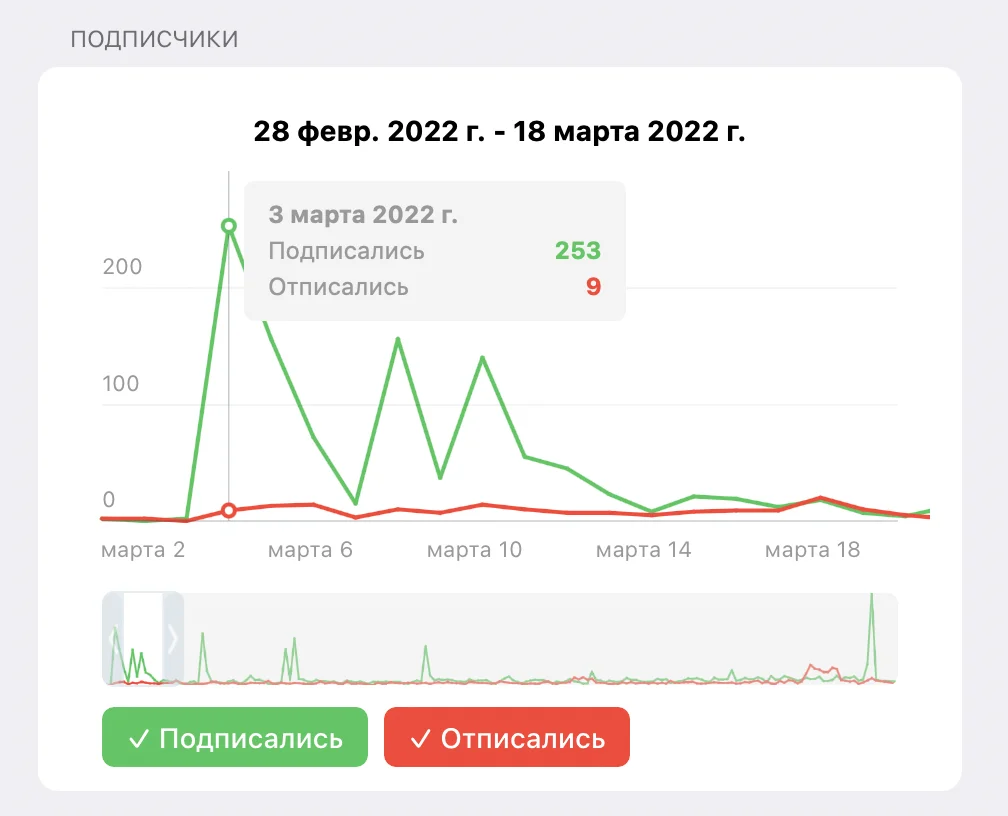 На самом деле, с ней всё нормально. Сейчас мы изредка, буквально 1-2 раза в месяц, покупаем размещение на других каналах. Но на первых порах решили, что поставим эксперимент и попробуем привлечь подписчиков бесплатно.