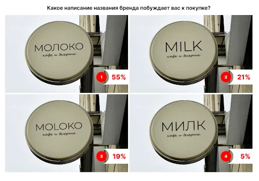Институт общественного мнения «Анкетолог» проводил опрос жителей России, чтобы узнать, какое написание бренд-неймов больше всего привлекает потребителей. Согласно опросу 52% респондентов предпочитают русскоязычные названия, 23% — англоязычные. Исследование показало также, что названия брендов на кириллице чаще побуждают людей к покупке.