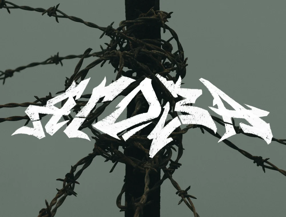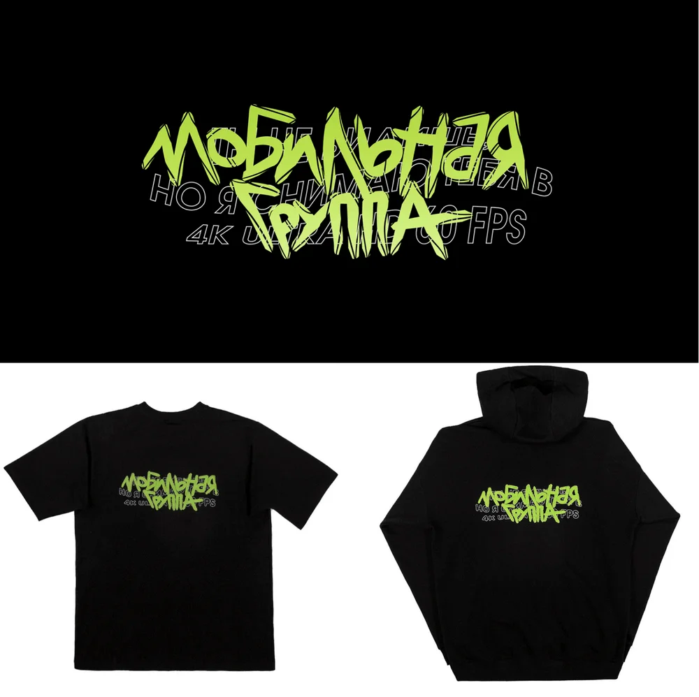 На мерче YouTube-блогера буквы выглядят так, будто нарисованы маркером и обведены гелевой ручкой. Линии наклонены в разные стороны, что добавляет небрежности.