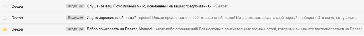 Музыкальный портал Deezer умеет делать в тему. После подписки вам дают премиум-версию программы на 15 дней. На почту приходят советы по настройке сервиса, дополнительные возможности и преимущества платной версии: