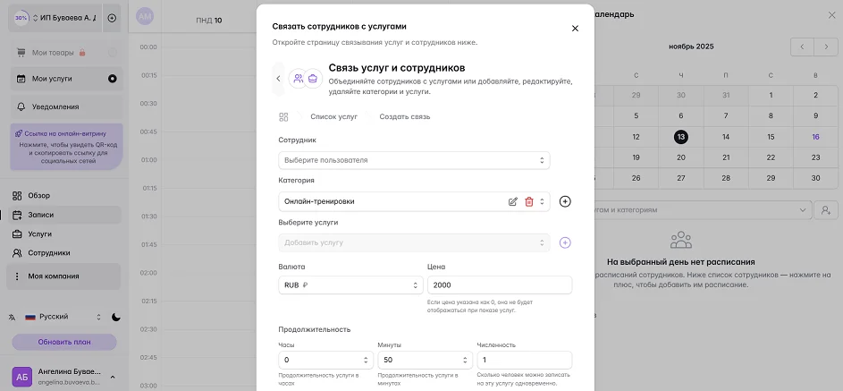 Ограничения: ограниченный бесплатный тариф — до 300 индивидуальных записей в месяц, сервисом могут пользоваться до 2 сотрудников.