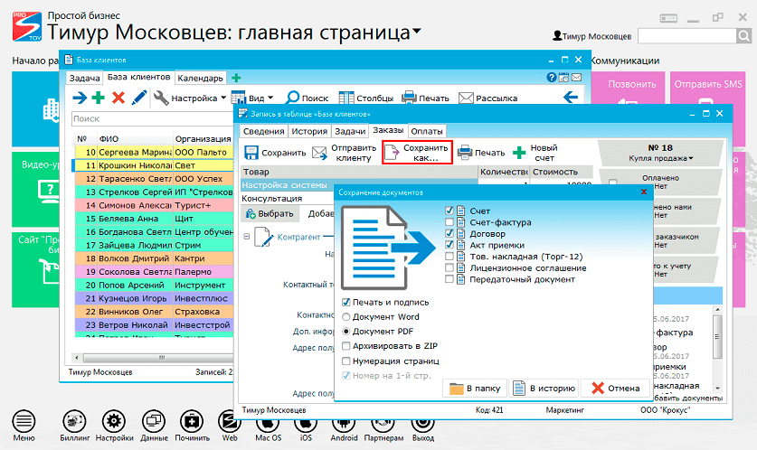 «Простой бизнес» — это сервис с CRM-системой и таск-менеджером. Подходит небольшим командам, которым нужно наладить работу с клиентами, выстроить воронку продаж и контролировать исполнение задач. В системе можно работать с воронкой, контролировать работу сотрудников, следить за складскими остатками, формировать документы и счета прямо из карточки клиента.