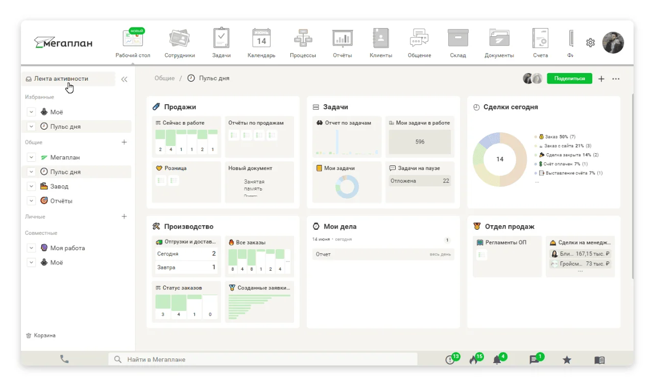 «Мегаплан» — платформа для работы с клиентами, которая поможет автоматизировать бизнес-процессы торговых компаний, а также позволит управлять продажами, производством, складом.