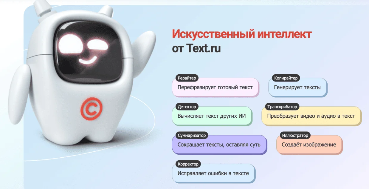 Нейросеть поможет в работе с текстом: сгенерирует с нуля, перепишет для повышения уникальности, уберет лишнюю воду и исправит ошибки. В сервисе предусмотрен специальный режим для создания карточек товаров — достаточно указать название продукта и ключевые слова. Писать сложные промпты не нужно. А еще Text.ru может создавать изображения.
