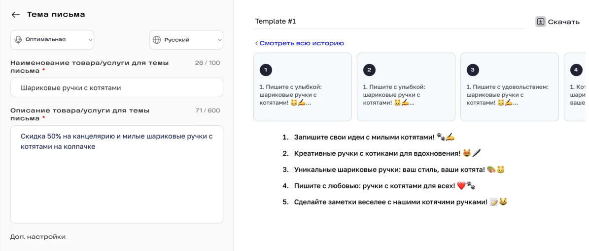 RoboGPT — это сервис для быстрой генерации текстов. Можно загрузить таблицу с товарами или предложениями в формате CSV, и сервис за несколько минут создаст нужные описания. Например, для SEO или рекламы. RoboGPT оснащен чат-ботом с моделями вроде GPT-4o и Claude 3.5 Sonnet, а также инструментами для рерайта, генерации текстов и создания изображений. Есть готовые шаблоны для постов и email-рассылок, так что можно создавать контент без сложных команд.