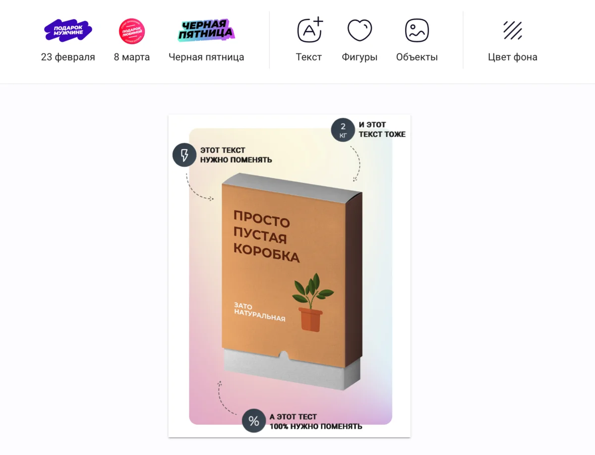 Стоимость: бесплатно доступен один базовый шаблон и ограниченный набор инструментов в редакторе. Подписка от 750 ₽ в месяц открывает полный доступ ко всем функциям сервиса.