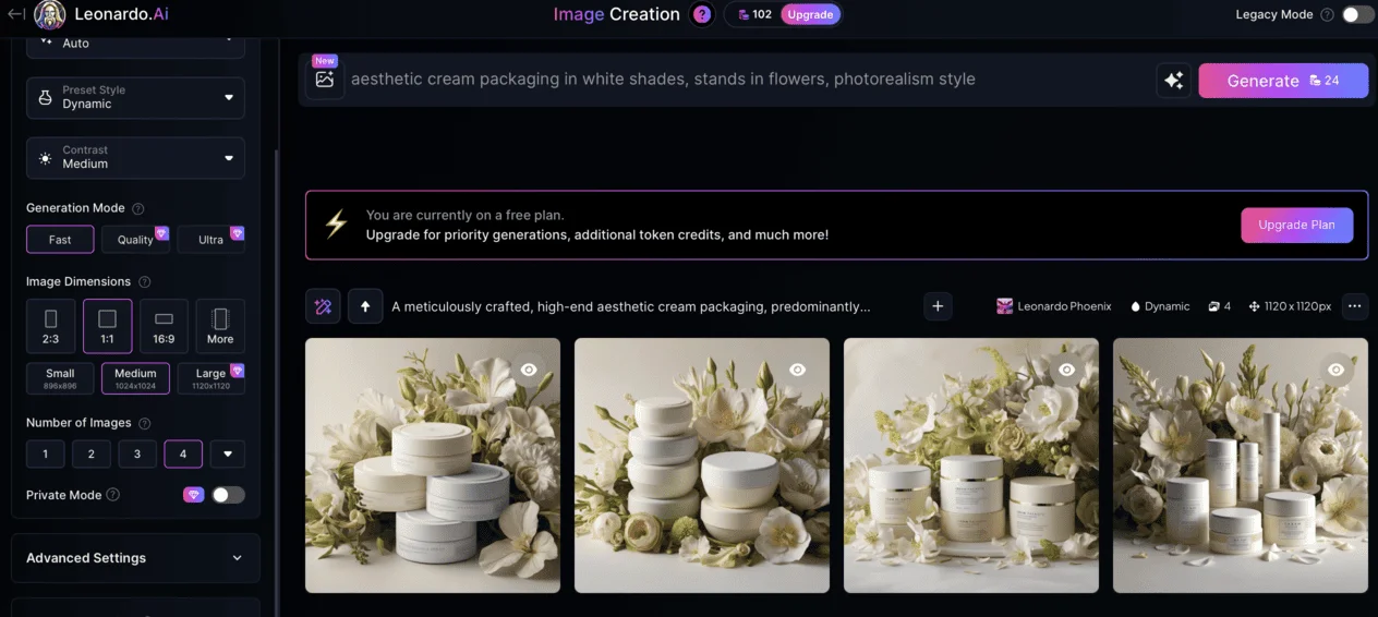 Интернет-магазинам особенно будет полезна функция Image Reference, с которой нейросеть генерирует несколько вариаций на основе загруженной картинки. Например, можно загрузить фото товара или модели, и ИИ создаст разные картинки с ним как если бы вы проводили фотосессию.