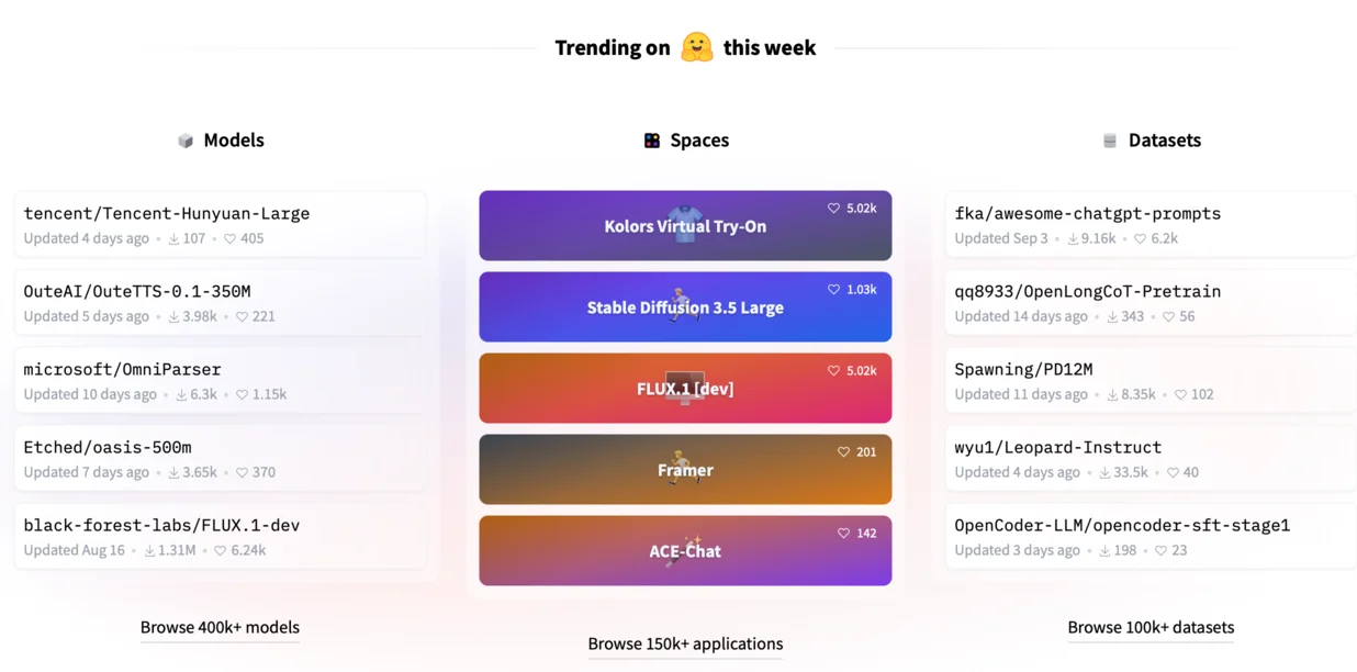Библиотека готовых ИИ-моделей и инструментов их кастомизации. Модели подходят для анализа текстов, создания чат-ботов, автоматизации общения с клиентами и анализа отзывов. Среди них есть даже нейросеть для виртуальной примерки одежды на фото. HuggingFace позволяет интегрировать их через API и исходный код в веб-приложения, чат-боты, рекомендательные системы и другие проекты.