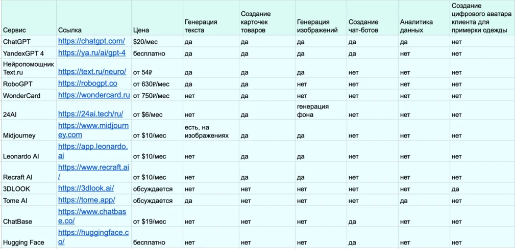 Собрали все полезные сервисы в одну таблицу для вашего удобства.
