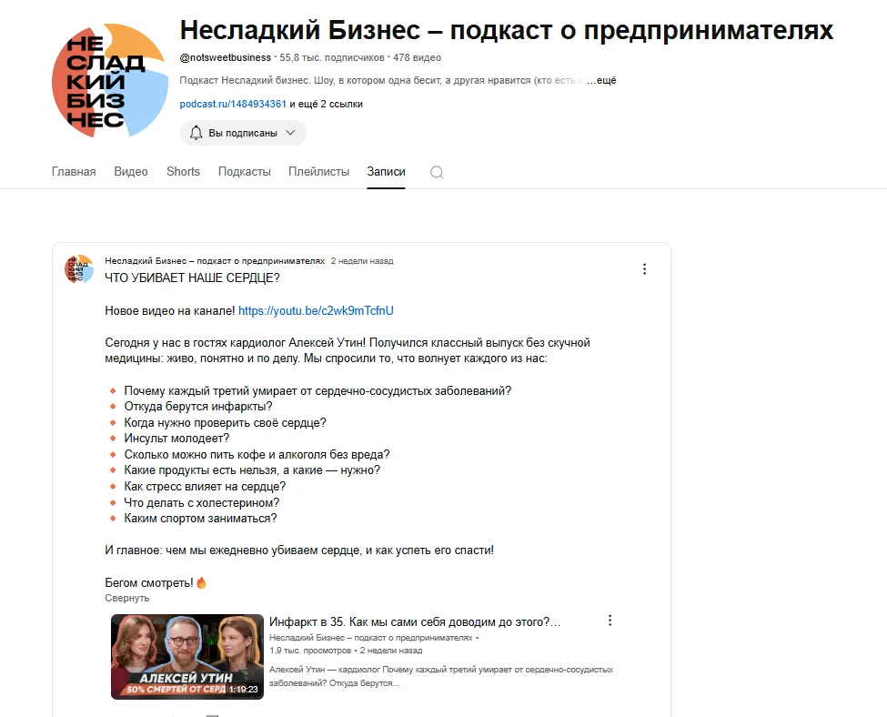 На главном видеохостинге глобальной сети можно публиковать и тексты: во вкладке «Сообщество» отображается лента записей. Конечно, в дополнение к видео. Без видео на YouTube заметным стать нельзя. Чтобы появилась возможность писать посты, необходимо сперва набрать 500 подписчиков.