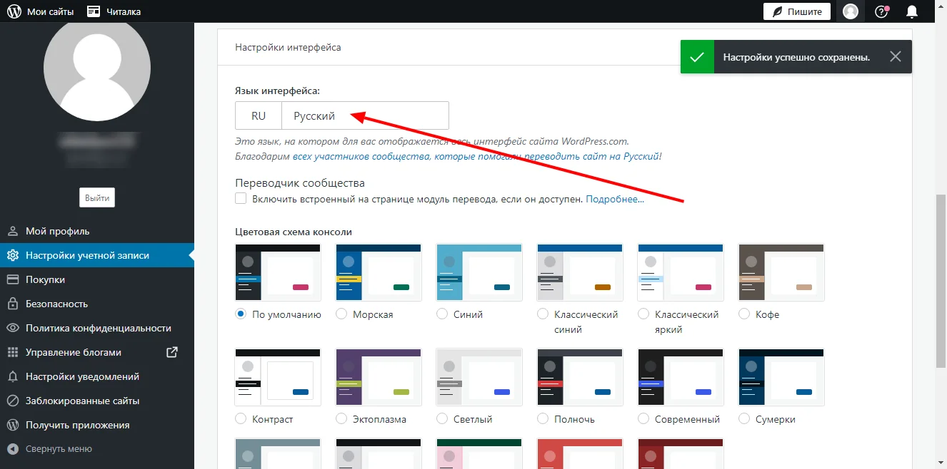 WordPress изначально разрабатывался именно для того, чтобы люди могли с максимальным удобством вести блоги. После быстрой и простой регистрации можно практически сразу начать писать статьи. Только сперва поменяйте язык в настройках учётной записи, иначе придётся пользоваться англоязычным интерфейсом.