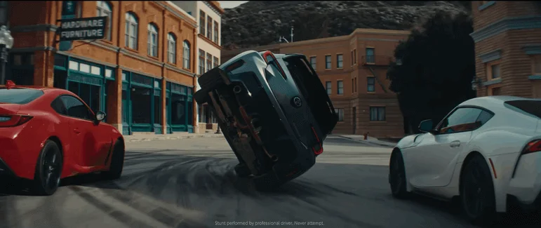 Ролик напоминает короткометражку с полноценным сюжетом. Чтобы показать возможности автомобиля, сделали экшен-сцены, как в фильмах. Зрители наблюдают за развитием истории и ждут следующего эпичного кадра. Аудитория видит, на что способна Toyota, и начинает высоко ценить машины компании. Это повышает лояльность к бренду и укрепляет статус автомобилей.