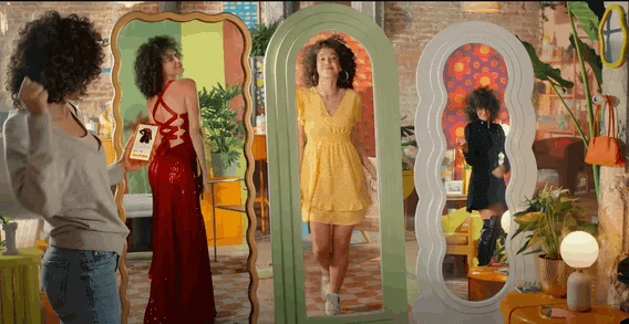 Temu — интернет-магазин товаров из Китая. Ролик рекламирует его мобильное приложение. Рекламный слоган “Shop like a Billionaire” («Покупай как миллиардер») говорит о том, что цены настолько низкие, что покупатель может купить все, что захочет. Героиня видео бесконечно меняет образы, заказывая товары в Temu.