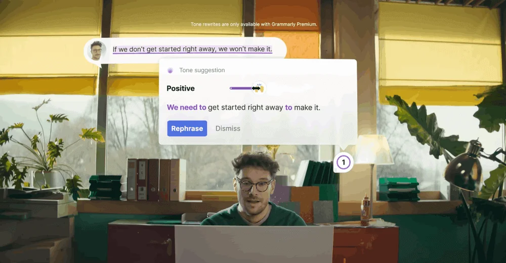 Герой видео работает главой отдела маркетинга, и ему нужно уложиться в дедлайн и запустить новый продукт. Чтобы мотивировать команду, он пишет сообщения с помощью Grammarly. Программа подсказывает, как звучать увереннее и убедительнее. Например, фразу «Если мы не начнем прямо сейчас, то не успеем» сервис переформулировал как «Нам нужно начать прямо сейчас, чтобы успеть». Аналогичным образом сервис помогает подобрать правильный тон в общении с клиентом. В итоге герой все успевает, и его проект выстреливает.