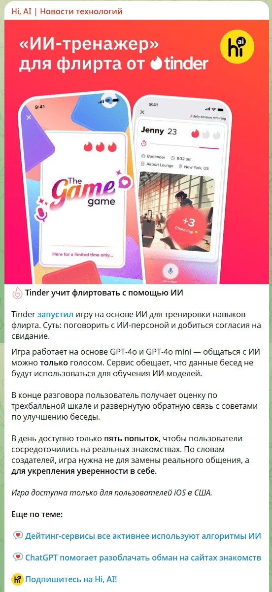 Иногда автор пишет свое мнение о трендах или сравнивает инструменты. Если нужно быстро сориентироваться, что нового появилось в мире AI — канал точно поможет.