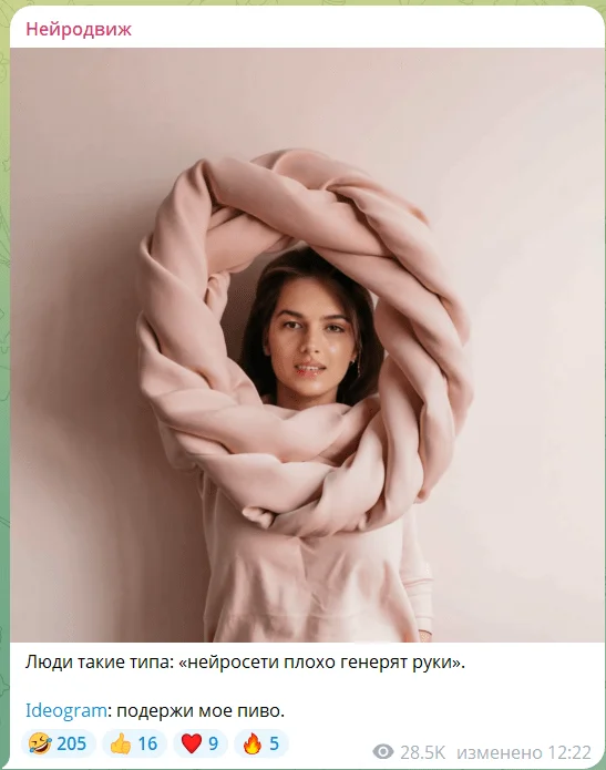 О чем пишут. В канале собирают все самое интересное из мира ИИ. Например, новости про релизы и обновления нейросетей, вирусные видео с фейковыми котами и AR, странные эксперименты с промптами, нейросериалы из Китая и подписку на принтер от HP.