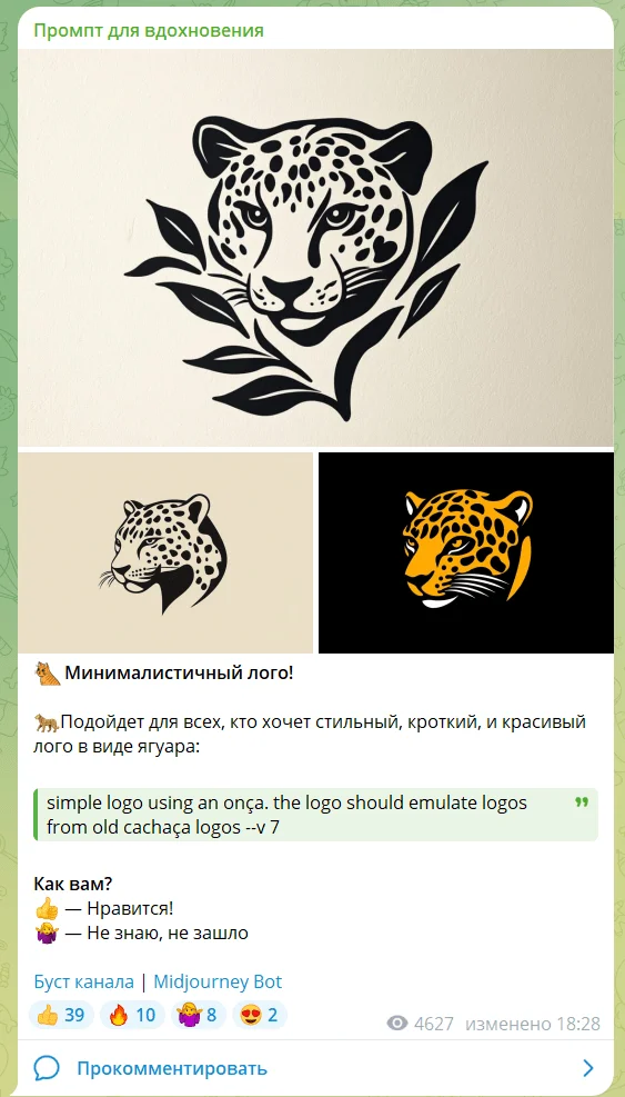О чем пишут. Канал для дизайнеров: автор работает с изображениями, подбирает сервисы под разные задачи и учит использовать нейросети в работе дизайнера. Например, предлагает читателям повторить генерацию по готовому промпту или подобрать свой, чтобы получить похожую иллюстрацию.