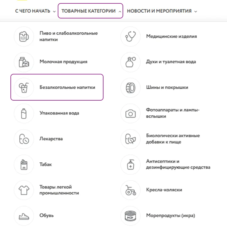 Например, предприниматель продает соки. Ему нужно зайти в раздел «Безалкогольные напитки» → подраздел «Сроки обязательной маркировки». В нем будут указаны все изменения и нововведения с датами.