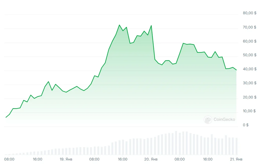 На этом Трамп не остановился и меньше чем через сутки свою монету выпустила его жена — Мелания Трамп (MELANIA). Из-за выхода ее токена монета Трампа обвалилась до $40, а сама MELANIA подскочила с $0 до $17 за штуку. Попутно она обвалила котировки мужа (до $40), поскольку трейдеры кинулись продавать TRUMP, чтобы купить новый растущий мемкоин.