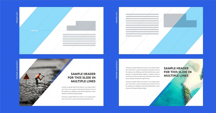 Размещайте элементы внутри колонок и модулей. Все элементы дизайна должны начинаться и заканчиваться в пределах колонок или модулей, а не в промежутках между ними. Межколонные и межмодульные интервалы создают «воздух» в макете, но не служат опорными точками для расположения контента.