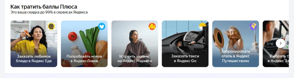 Почему стоит взять: мультиподписка, которая сочетает развлечения и финансовые бонусы. Вы получаете доступ к разнообразному контенту и персонализированным рекомендациям. Подпиской можно поделиться с тремя близкими. Кешбэк баллами (1 балл = 1 ₽) начисляется за покупки в сервисах Яндекса и покрывает до 99% их стоимости. А участие в «Плюс Дейли» приносит дополнительные бонусы за активность.