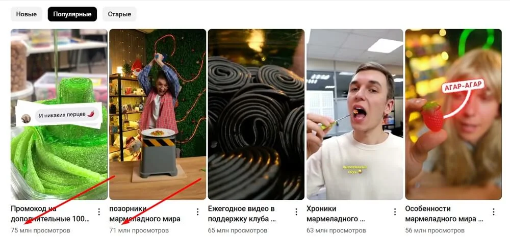 Например, «Мармеладыч» снимает вертикальные видео, в которых показывает товар — желейные конфеты. 70+ млн просмотров набирают видео, где зрителя погружают в мир сладостей, показывают хронику приготовления с производства, смешно и безжалостно уничтожают самые невкусные товары.
