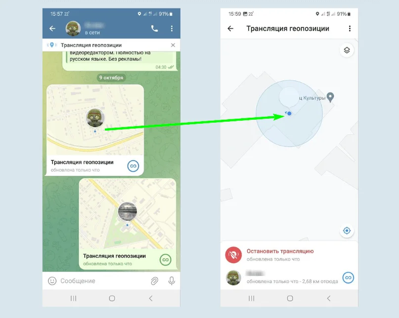 Трансляция геолокации может быть полезна при общении с близкими людьми либо когда вам нужно подтвердить своё местоположение. Например, если у вашего ребёнка есть Telegram-аккаунт, то функция трансляции геопозиции поможет настроить отслеживание местоположения без умных часов и специальных программ. Откройте на телефоне ребёнка личный чат с вами и включите постоянную трансляцию геопозиции. В любое время вы можете кликнуть по сообщению с гео и посмотреть, где находится ребёнок.