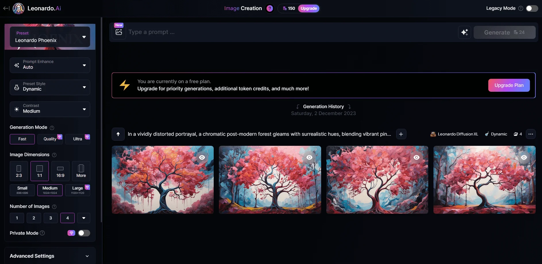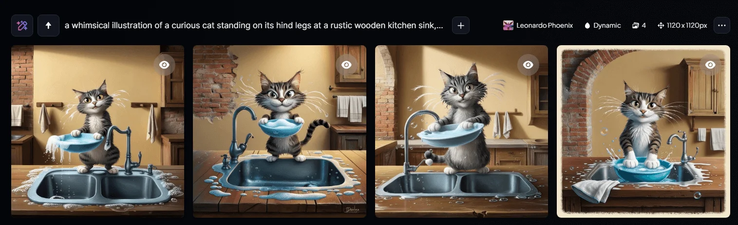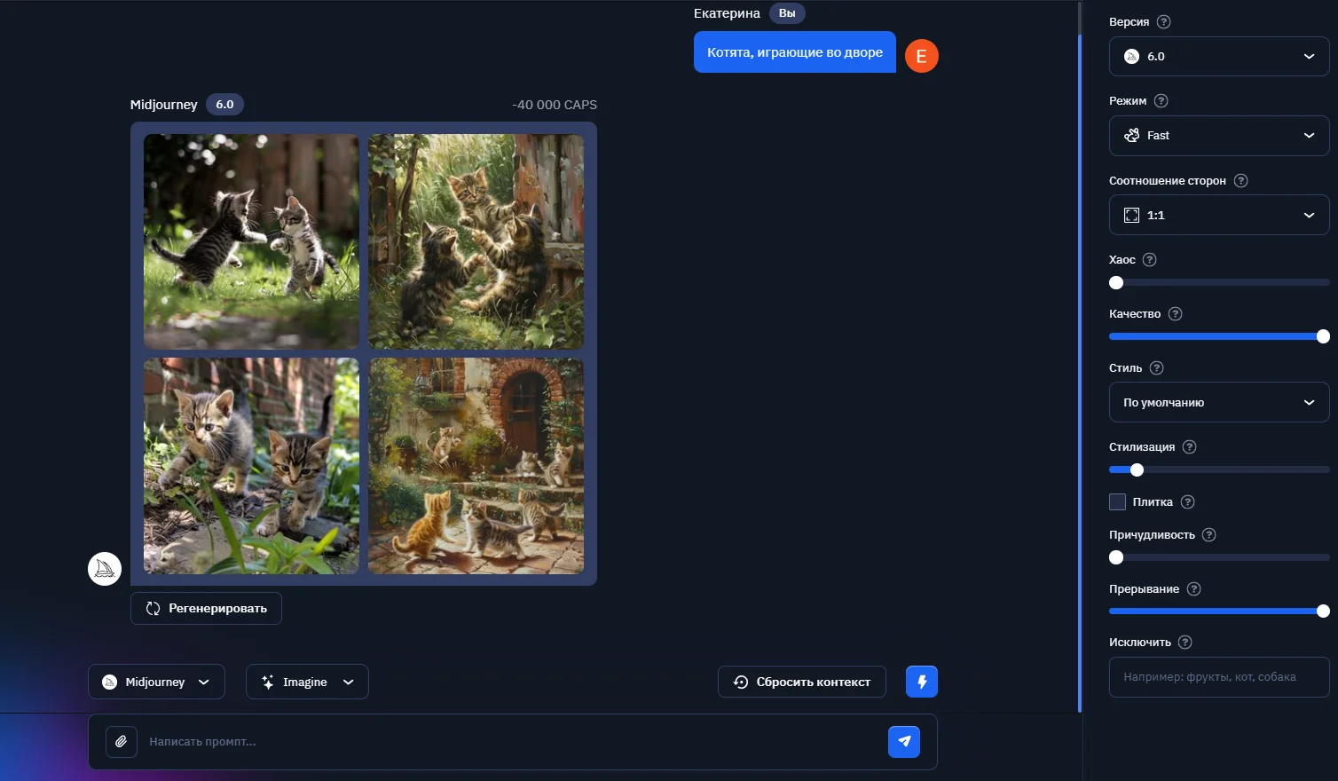 Нейросеть за несколько секунд сгенерирует 4 новых изображения на основе заданных параметров.