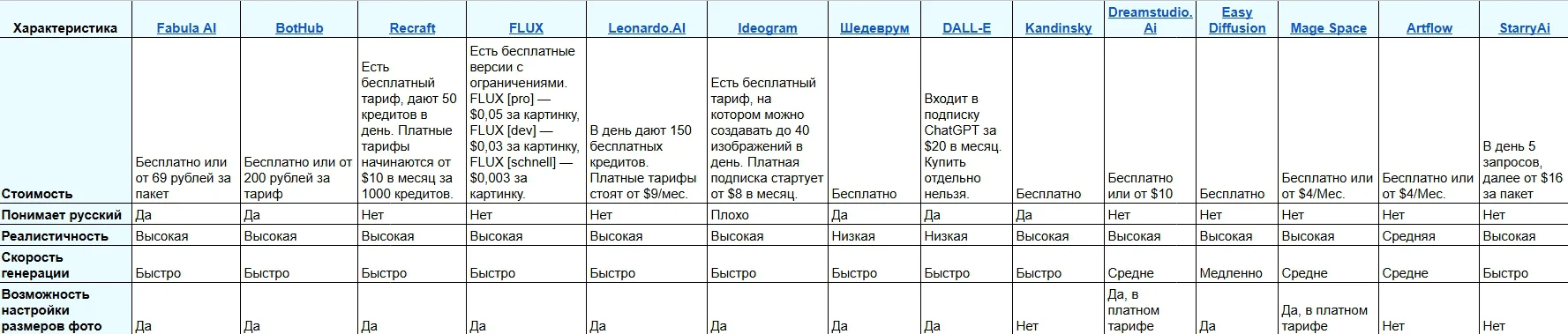 А чтобы вам было проще оценить особенности каждой нейросети, подготовили небольшую сравнительную таблицу — пользуйтесь: