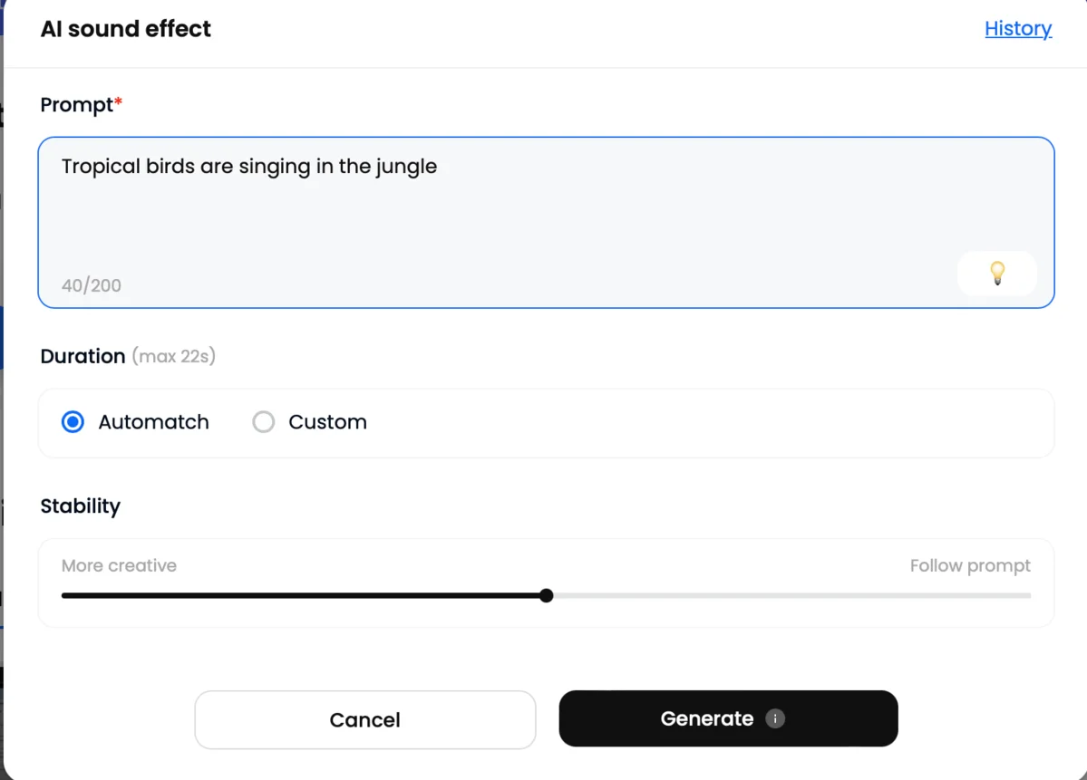 Если вы работаете с видео, можно загрузить ролик — система проанализирует его и сгенерирует подходящие звуки. Но и в этом случае нужно добавить текстовый промпт: так нейросеть лучше поймет, что именно нужно.