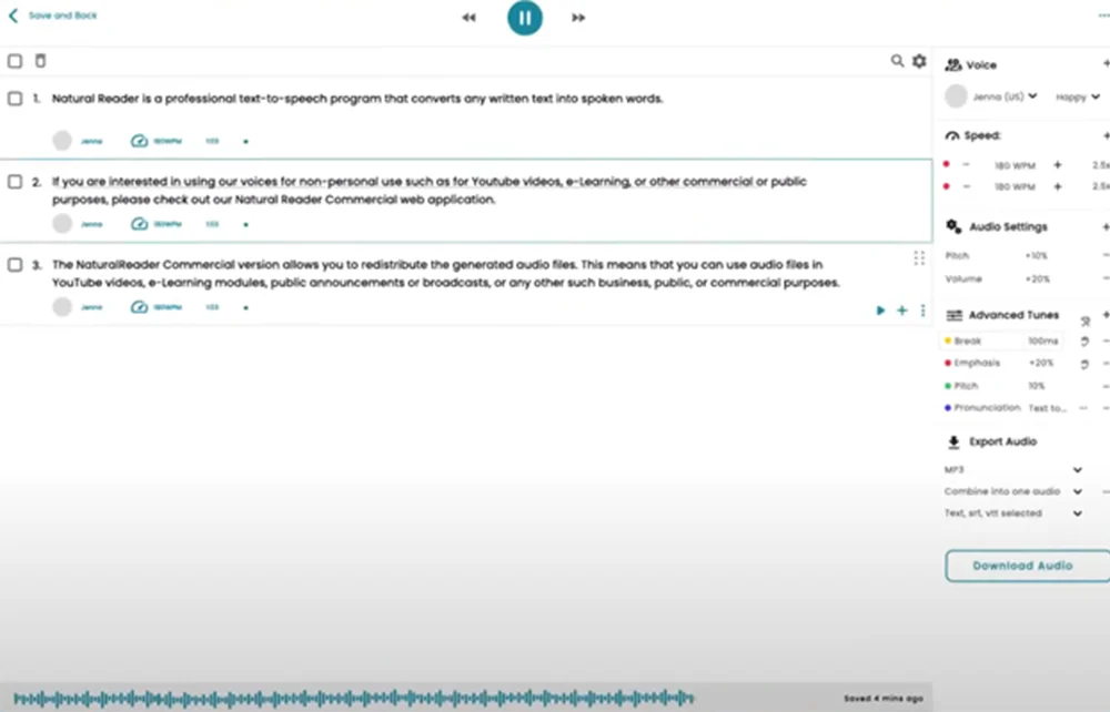 | ✅ Продвинутый аудиоредактор: можно делать сложные проекты с множеством голосов |