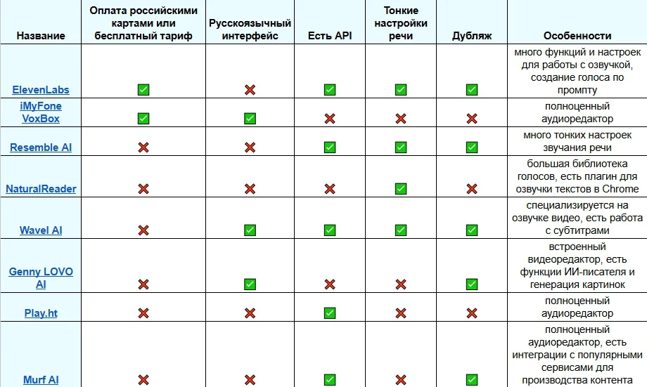 | ✅ Можно оплатить картой российского банка | ❌ В бесплатной версии нет возможности клонировать голос |