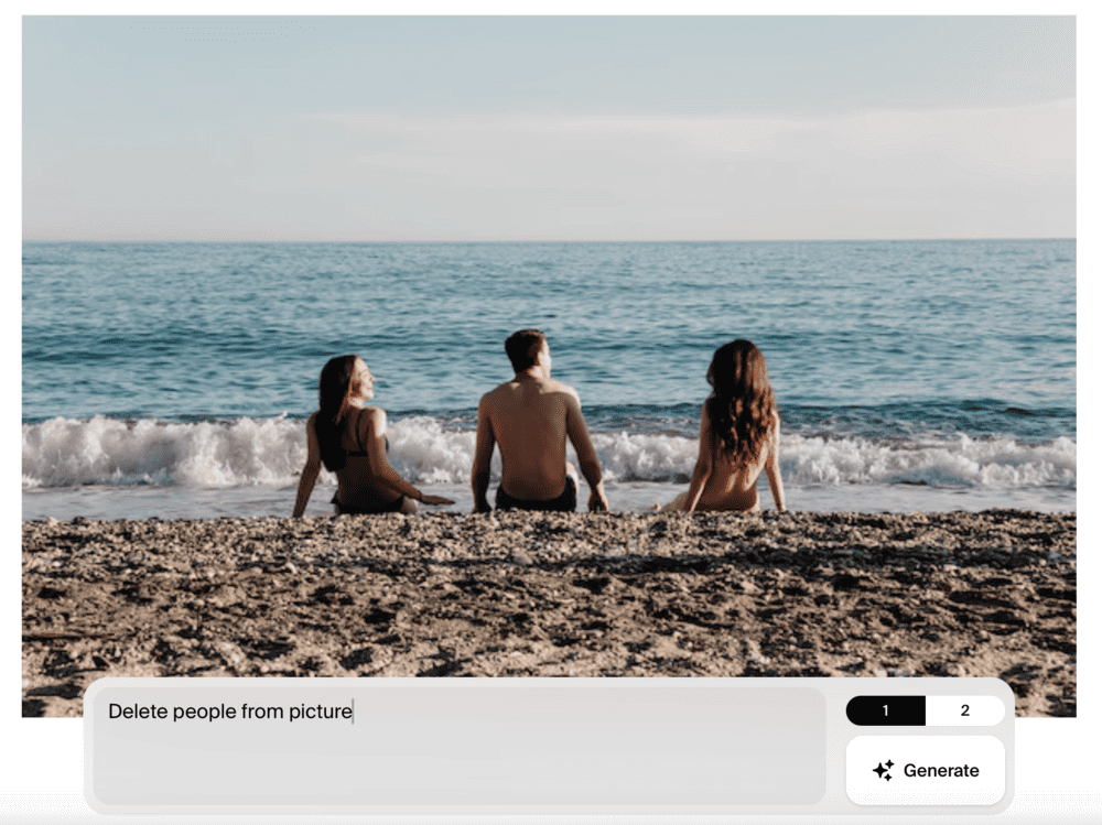 Загрузите картинку и в поле для промптов написать нужную команду на английском языке. В данном случае: «Delete [object] from picture».
