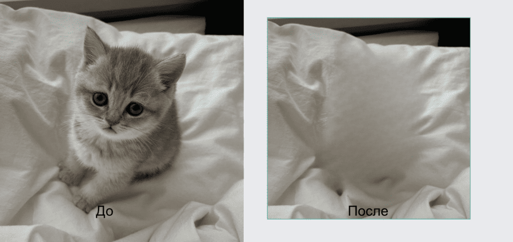 Результат отличный, правда, пришлось несколько раз повторить процесс удаления, чтобы полностью убрать котенка. Рекомендую выходить за рамки объекта, когда его обводите, чтобы захватить все тени.