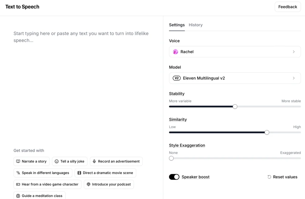 ElevenLabs — один из ведущих сервисов для синтеза речи. Он позволяет озвучивать текст на 29 языках, включая русский. В разделе Text to Speech в бесплатной версии можно озвучить до 5 тысяч символов за раз, а в платной — до 10 тысяч. Для более длинных текстов воспользуйтесь инструментом Studio. Это аудиоредактор для работы с книгами, статьями и подкастами.
