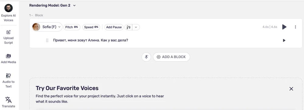 Стоимость: после регистрации пользователям дают бесплатный доступ на 3 дня с возможностью озвучивать любые тексты десятью голосами на выбор. Данные карты все равно придется ввести. Хотя тариф и называется Free Plan, после пробного периода за него надо платить по $2,99 в месяц. AI Voice Studio и библиотека с голосами доступны по подписке Premium за $11,58 в месяц.