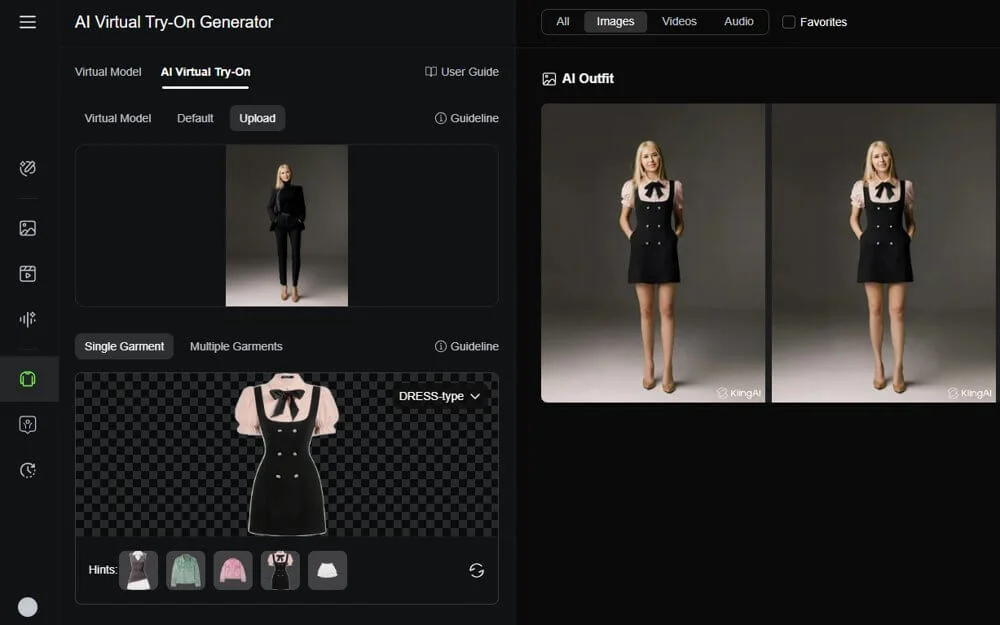 Функции. Kling AI — нейросеть для генерации изображений и видео. Сервис выпустил отдельную функцию Try On, где можно примерить одежду на модель и затем оживить ее.