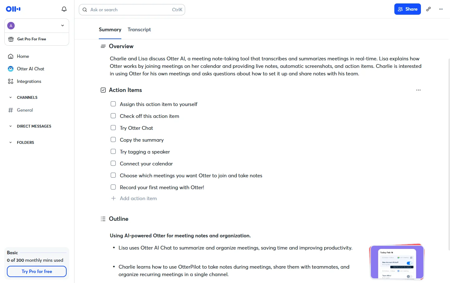 С Otter можно легко получать подробные сведения о созвонах и делиться ими. Сервис автоматически записывает совещания, делает заметки в режиме реального времени и создает резюме, доступное всем участникам.