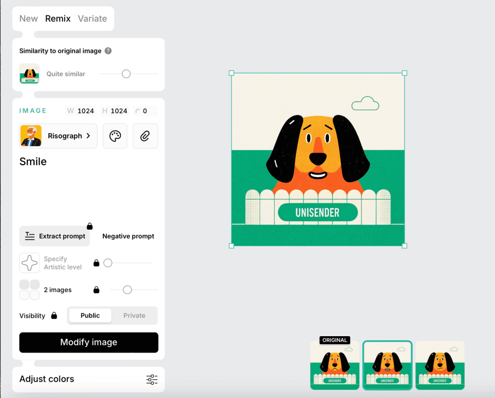 Дальше изображение можно доработать: удалить фон, замиксовать с другой картинкой, увеличить масштаб или перегенерировать результат.