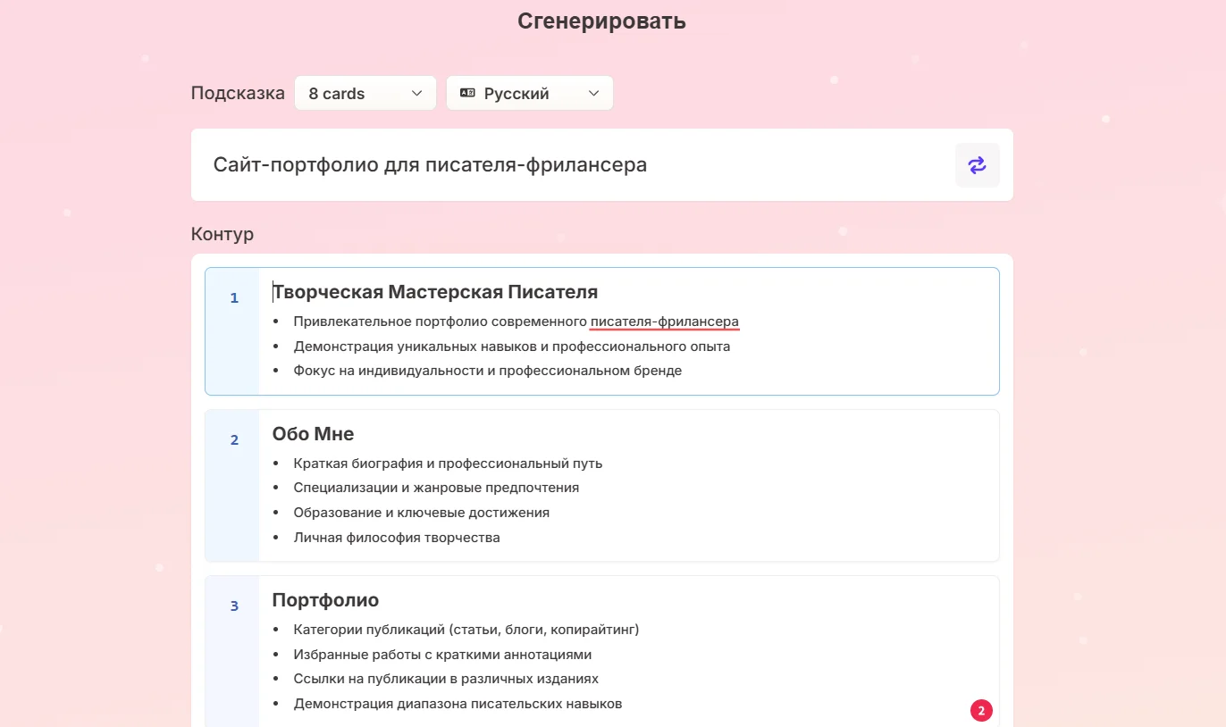 После генерации можно менять текст и расположения блоков, добавлять изображения, видео и работать над SEO-сайта.