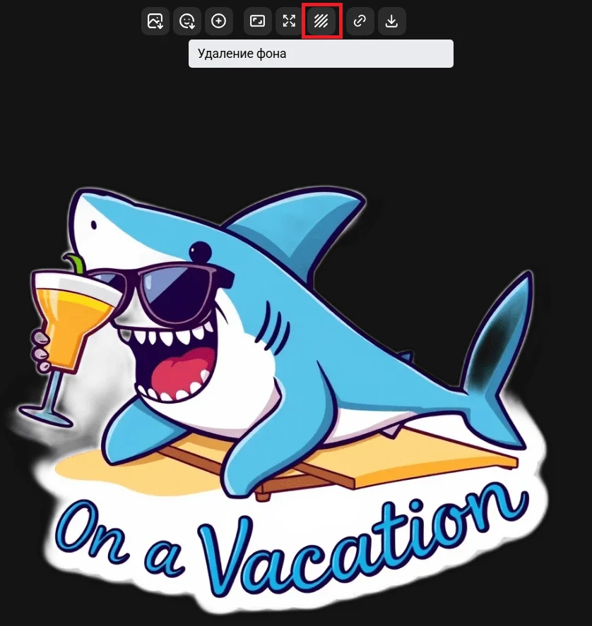 В этой нейросети есть отдельная функция для генерации стикеров, но она работает только с короткими запросами. Поэтому подходит для создания самых простых стикеров. Например, вот, что получилось по запросу «shark with sunglasses on a beach with cocktail»: