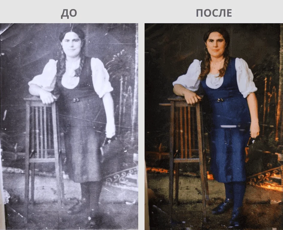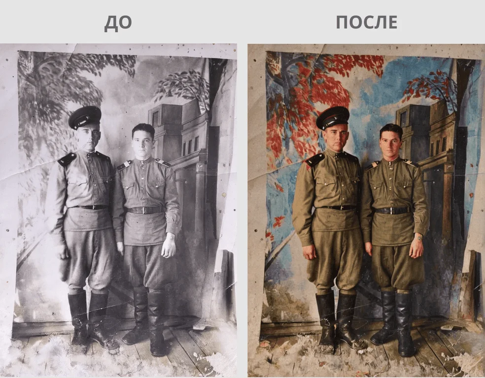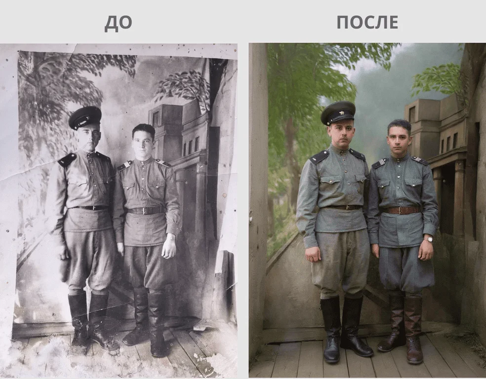 Это инструмент на базе искусственного интеллекта для колоризации и восстановления фотографий. Сервис автоматически добавляет реалистичные цвета черно-белым кадрам, повышает четкость, ретуширует лица, убирает царапины, разрывы и другие повреждения.
