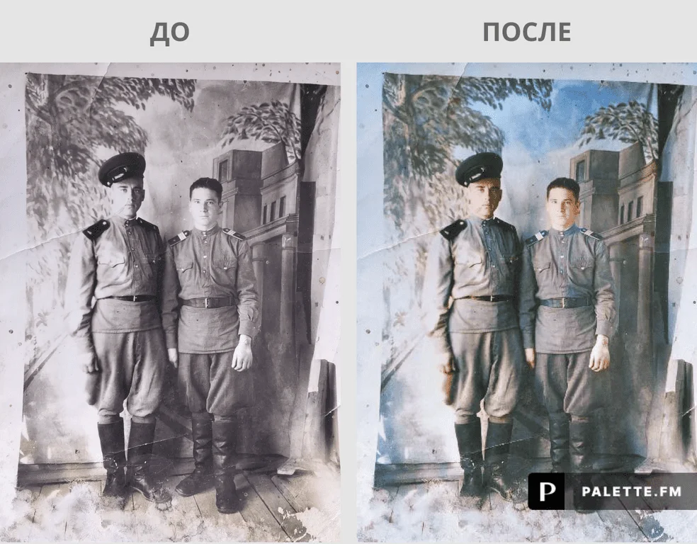 Palette.fm может увеличивать разрешение фотографий. А вот заломы, трещины и другие дефекты на старых фотографиях убирает плохо.
