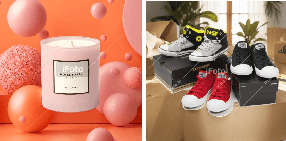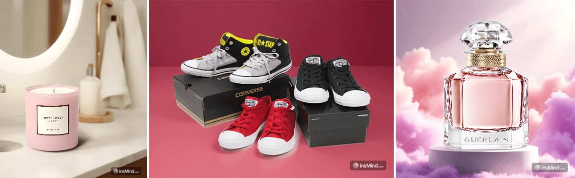 Результаты теста с товарами вышли неоднозначными. С кедами нейросеть не справилась: на красной паре некрасиво отображается тень и у изображения нет объёма. Шёлковая текстура на фоне свечи выглядит красиво, но складки смотрятся неестественно. А вот с парфюмом сервис справился лучше всего — роза на фоне получилась реалистичной.