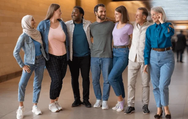 Также возьмем снимок с компанией людей на фоне белой стены.